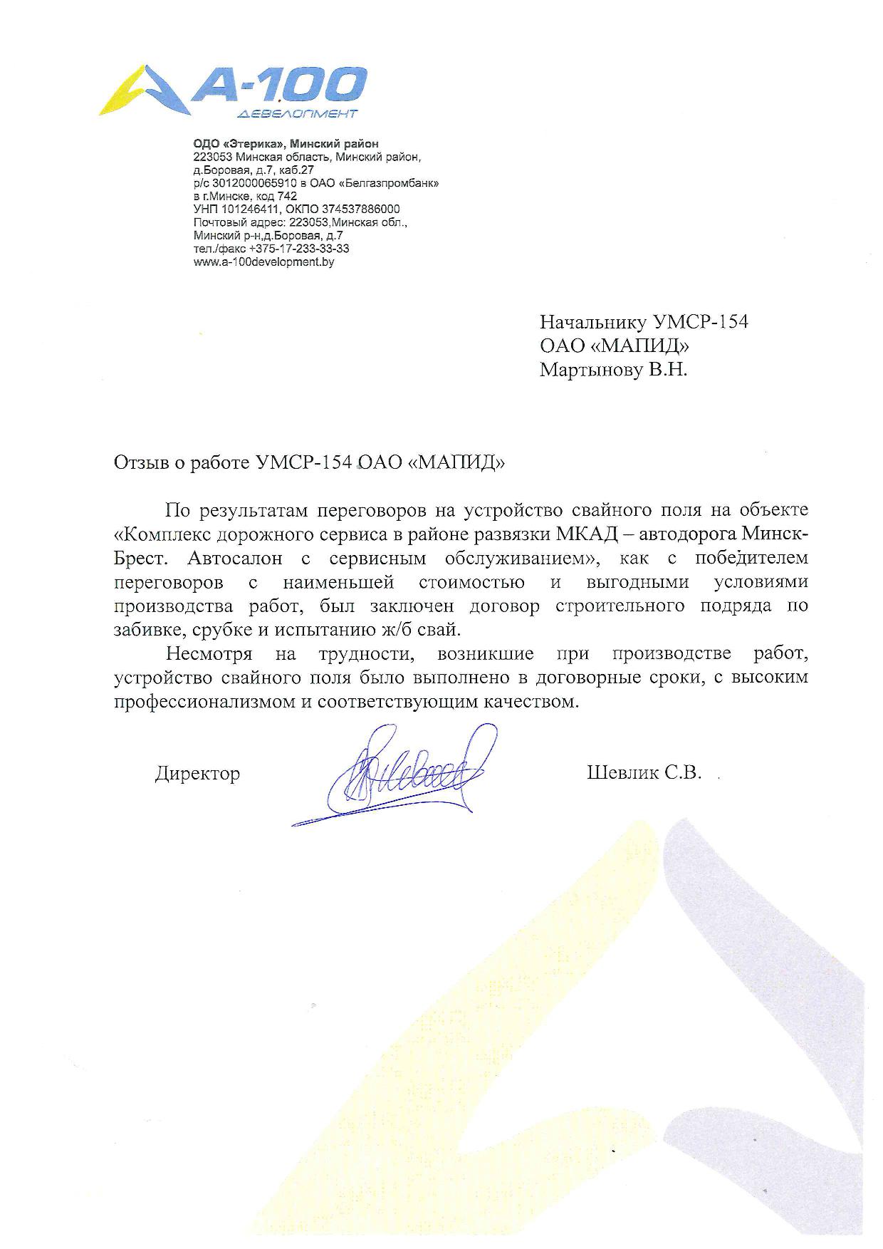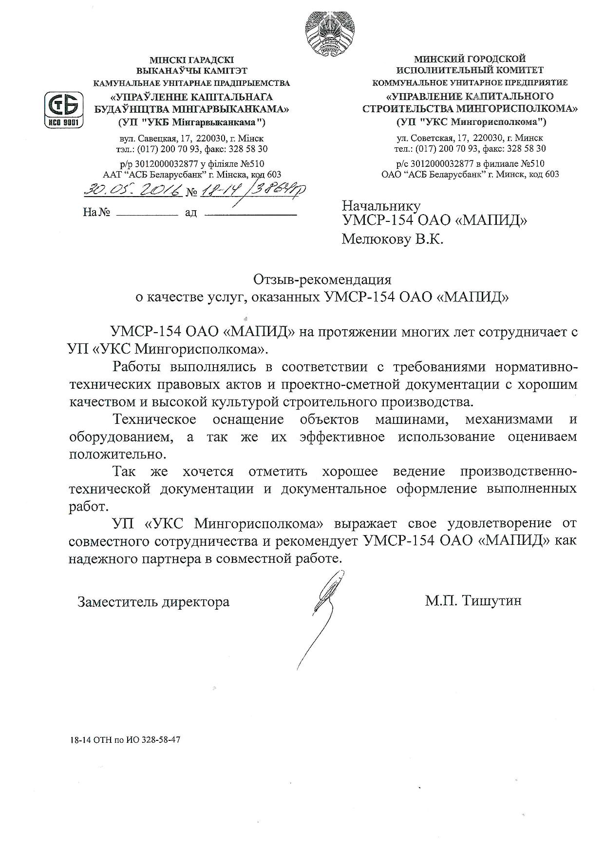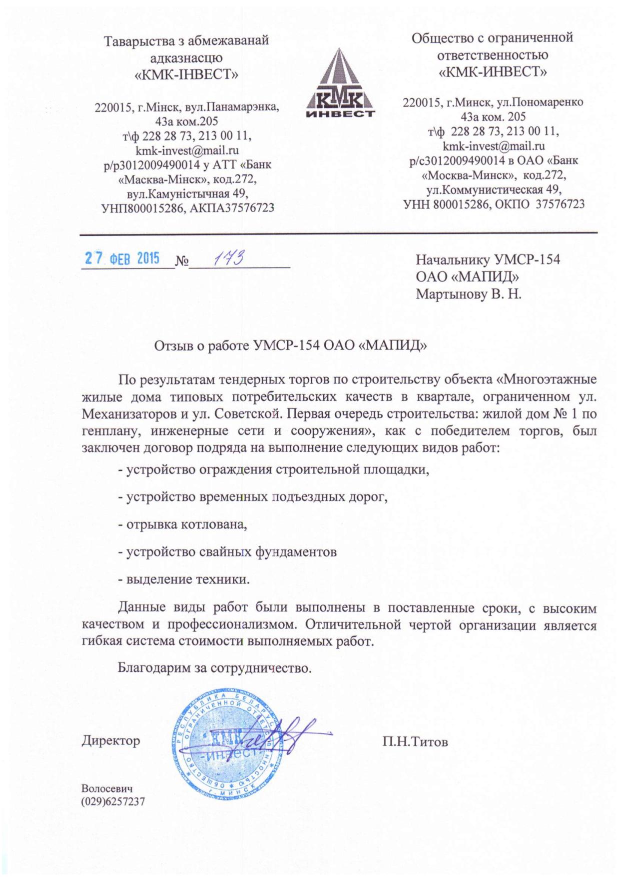 ОАО «МАПИД» Управление механизации и спецработ №154
