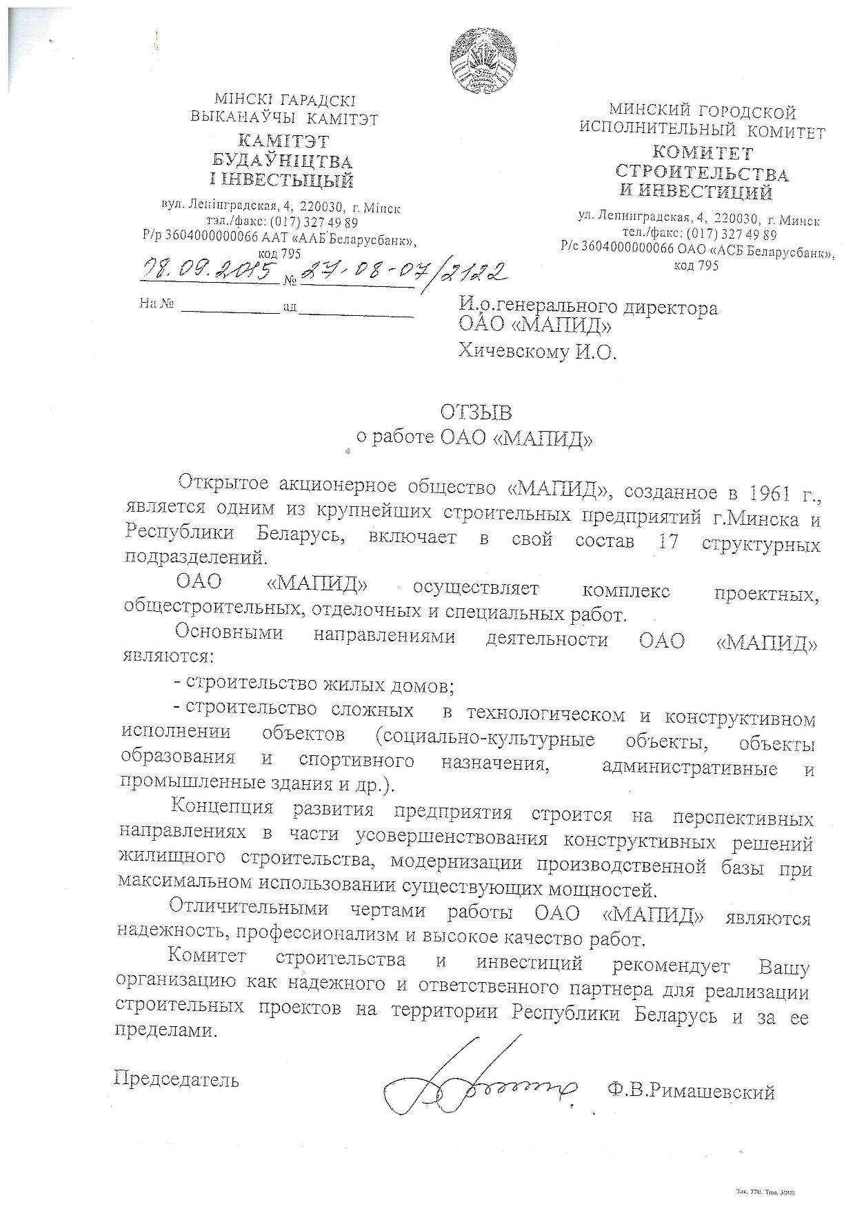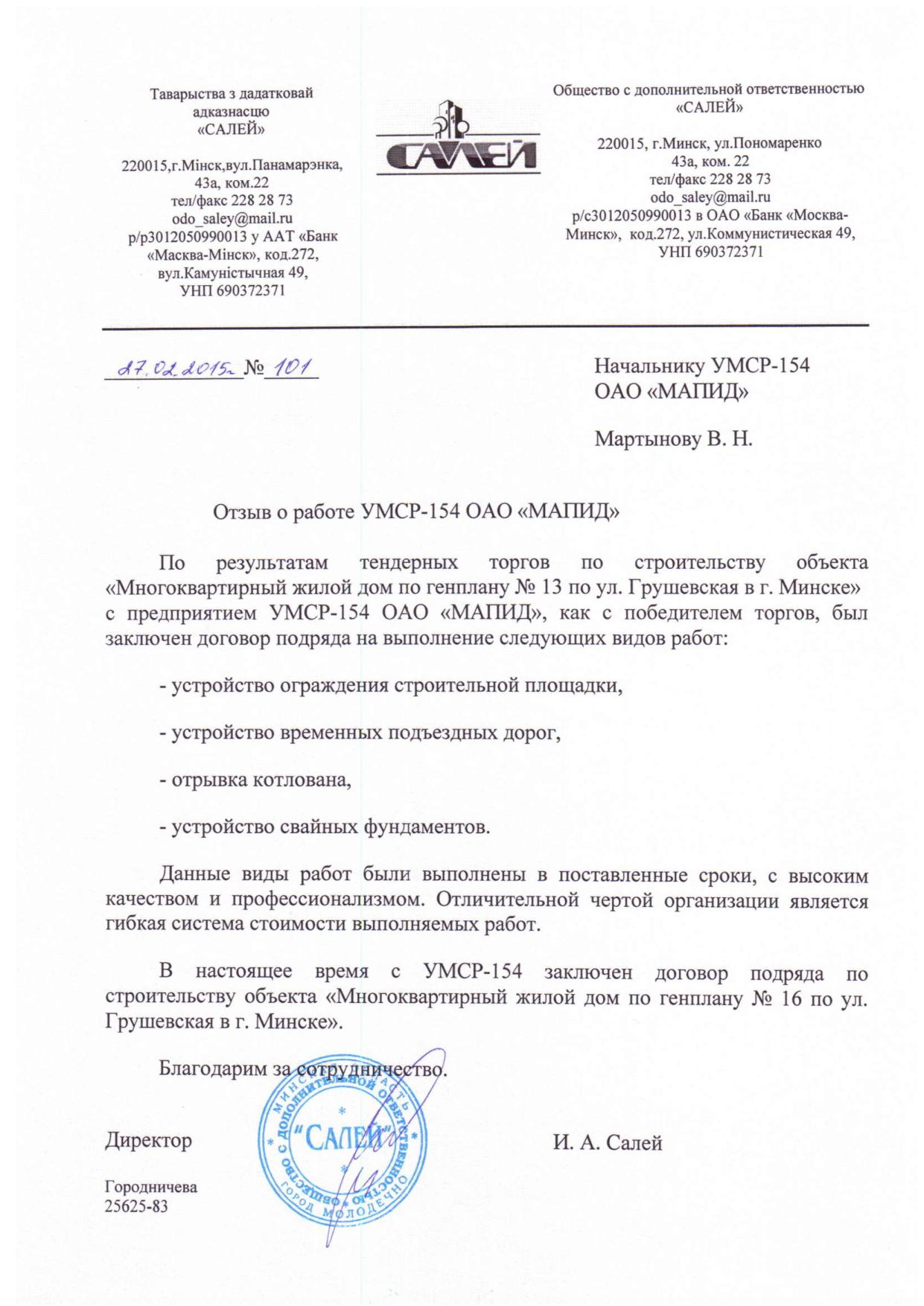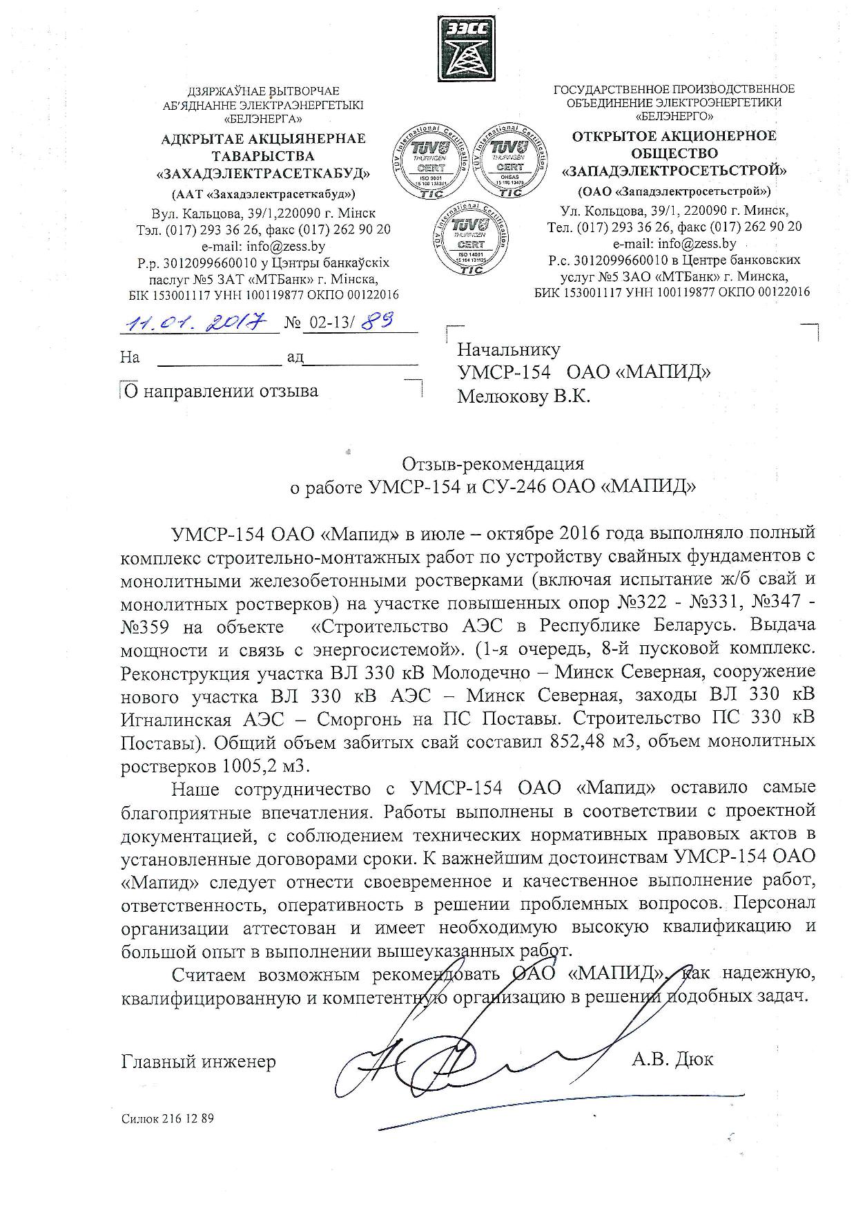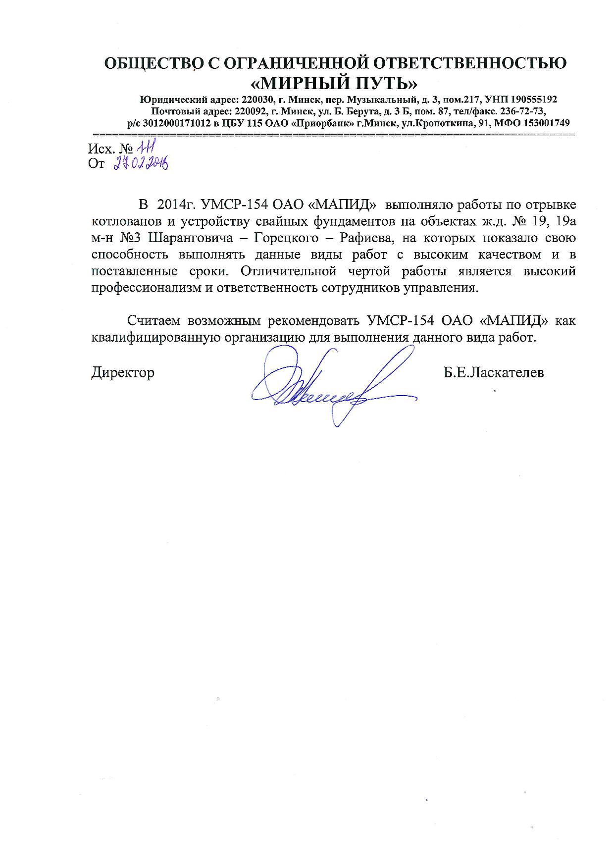 ОАО «МАПИД» Управление механизации и спецработ №154